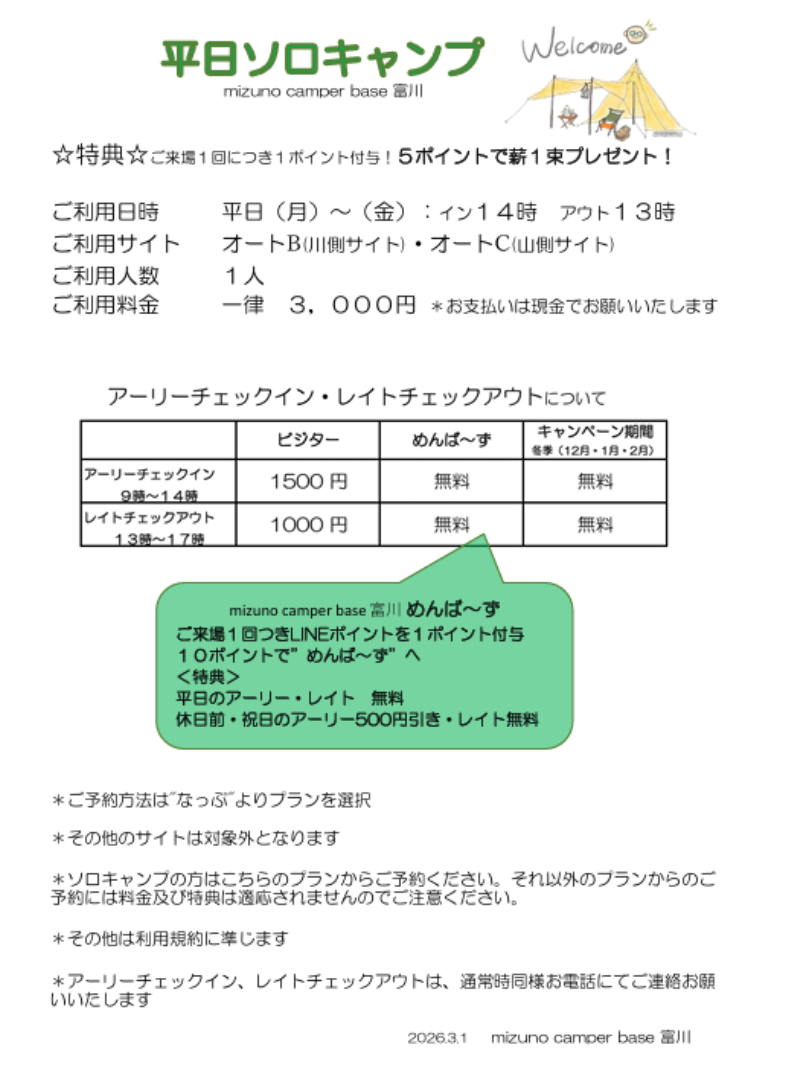 平日のソロのお客様対象